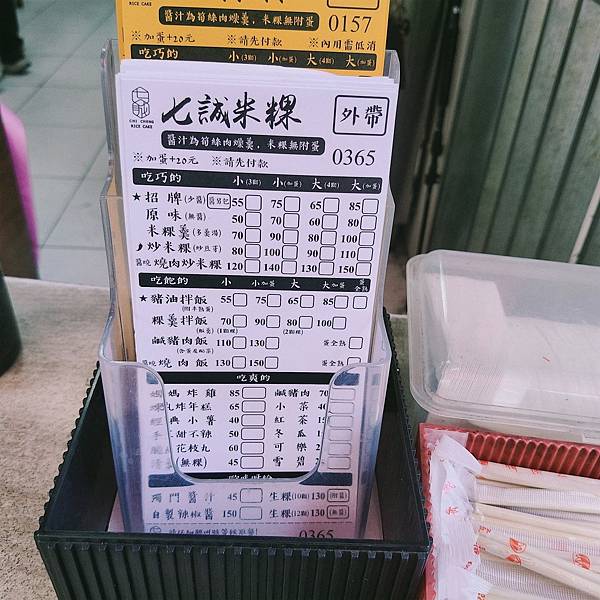 ↑店家內用及外帶的點餐單~外帶可不排隊